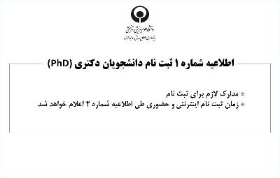 اخبار > اطلاعیه شماره 1 ثبت نام دانشجویان دکتری (PhD)
