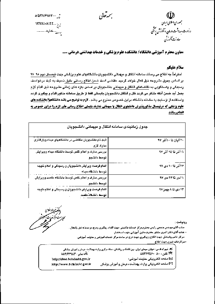اخبار > جدول زمانبدی سامانه انتقال و میهمانی دانشجویان کارشناسی نیمسال دوم 98-97