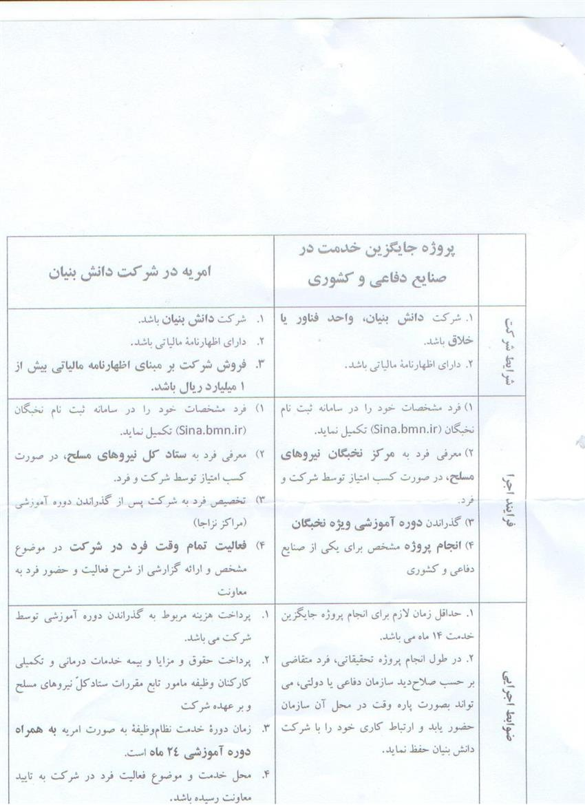 تسهیلاتی در زمینه سربازی اعضای فعال در شرکت های دانش بنیان و فن آور