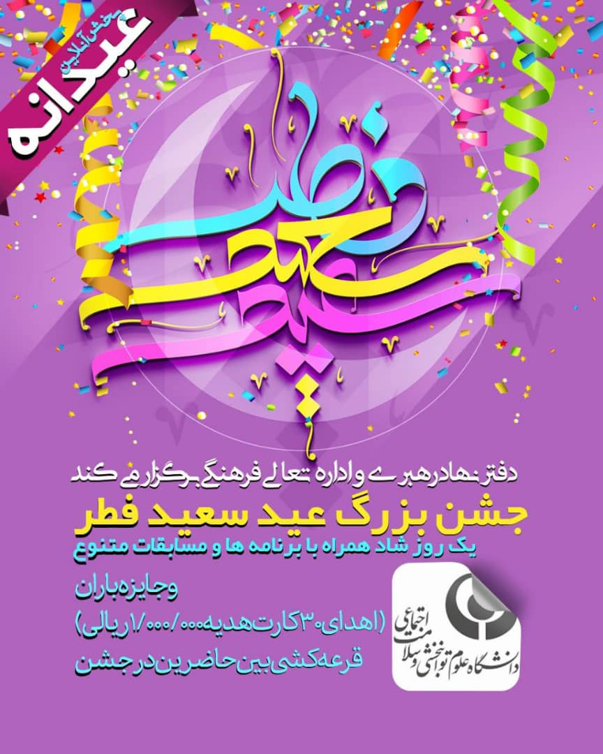 برنامه عیدانه فطر که شامل  پیام تبریک ریاست دانشگاه، قرائت قرآن، اجرا و استنداپ توسط دانشجویان نیز می شود، در روز عید با شرکت حدود ۳۰۰ تن از دانشجویان و کارکنان دانشگاه  (از طریق پنج لینک)  برگزار شد.