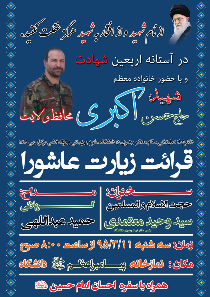 اخبار > دفتر نهاد نمایندگی مقام معظم رهبری در دانشگاه برگزار می کند: قرائت زیارت عاشورا