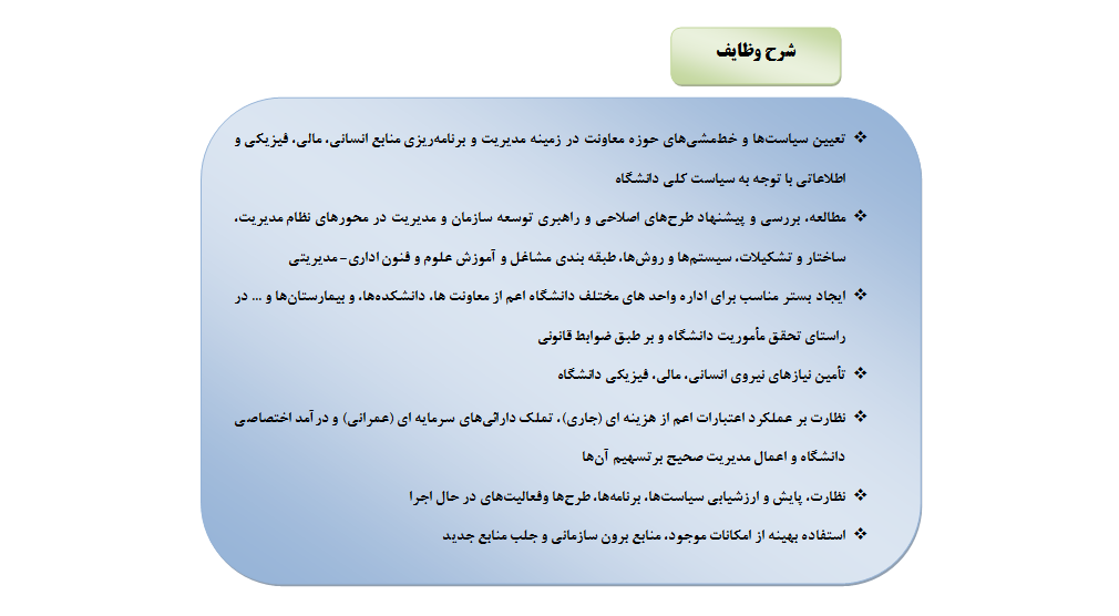 شرح وظایف مدیر منابع فیزیکی و طرح های عمرانی